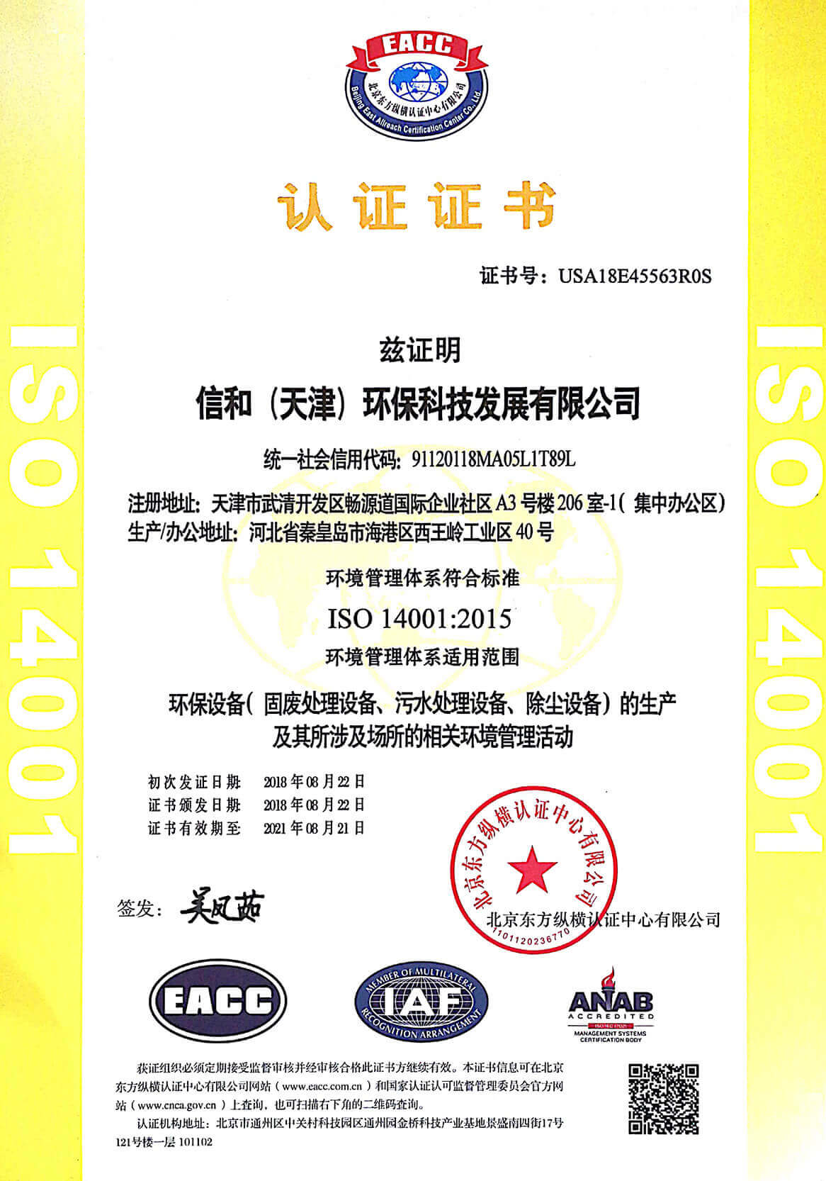 信和(天津)環保科技發展有限公司是一家專業從事環保設備研發的生產型企業,坐落于天津市武清開發區,注冊資金2000萬元,擁有≤中華人民共和國進出口企業資格證≥和≤安全生產許可證≥。公司為《中國環保產業協會會員單位》《中國城市環境衛生協會會員單位》《中國節能協會會員單位》。企業現有員工168人,其中高級職稱技術人員65名、1個技術研發中心和4個生產車間,擁有國際先進的板材加工中心、激光切割機、數控沖剪機、等離子切割機等下料成型設備。